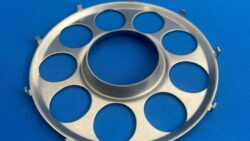 分野 産業機器 材質 特殊鋼(SK5) 加工方法 順送加工+単発加工 サイズ φ100×7mm 特徴