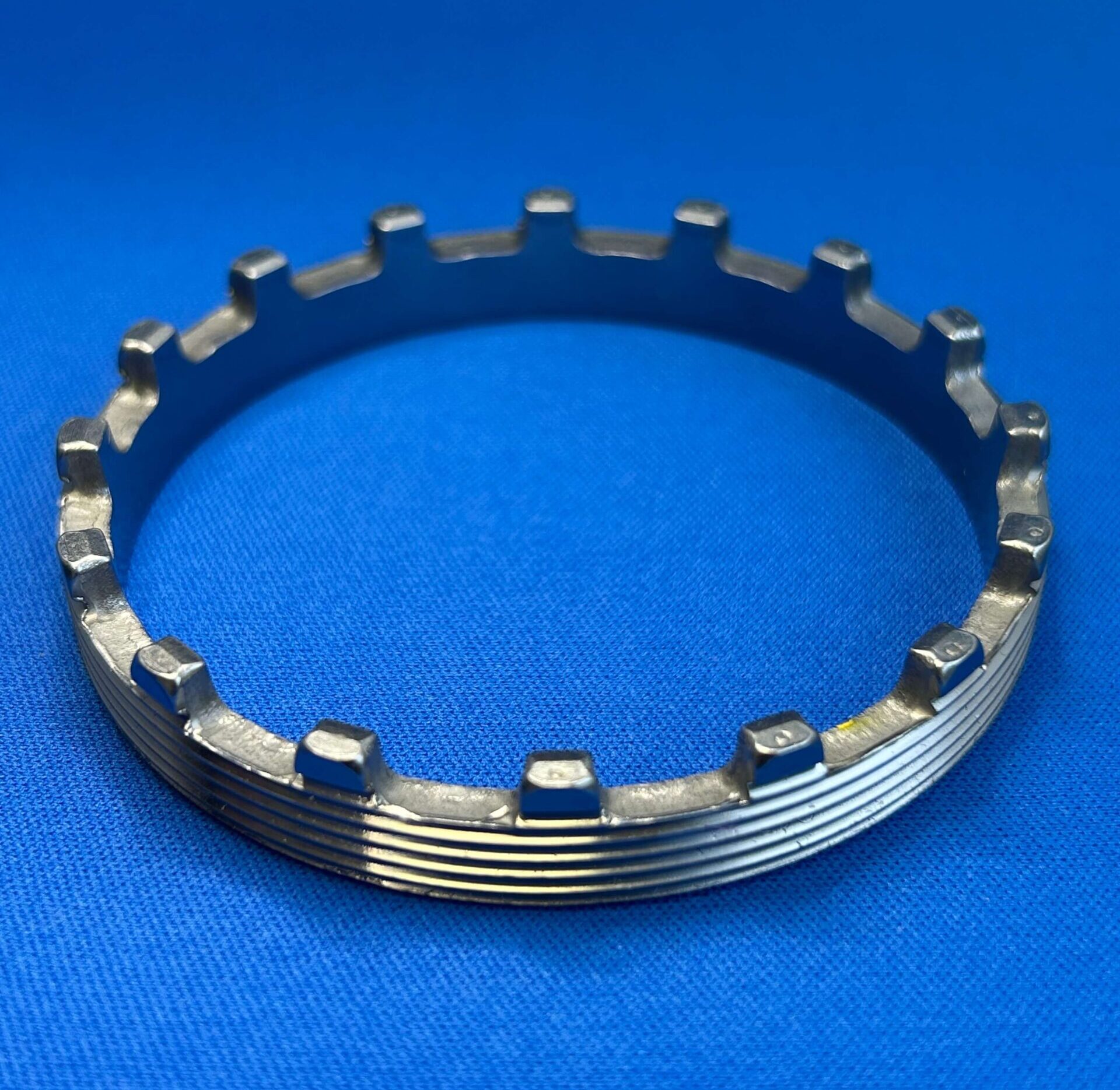 分野 産業機器 材質 特殊鋼(SK5) 加工方法 順送加工+単発加工 サイズ φ100×7mm 特徴